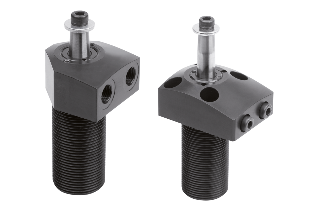 Larger piston diameters and longer strokes, other swivel angles, various clamping arm mounts, with position control.