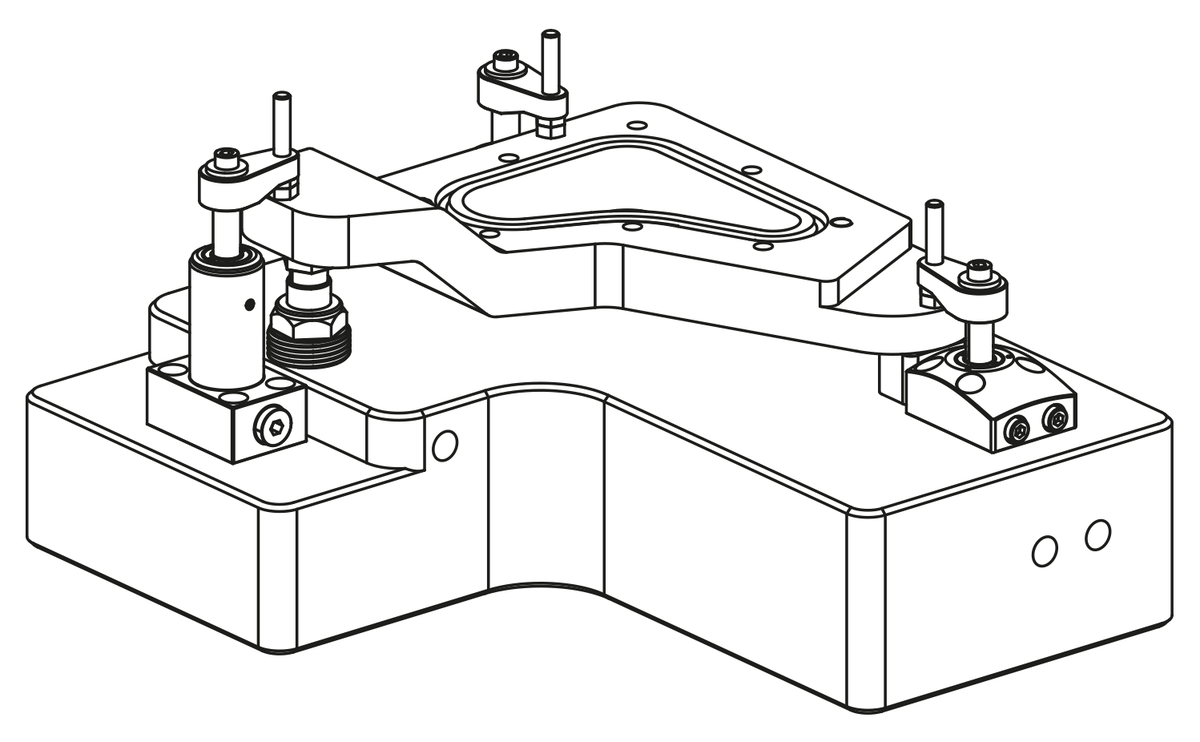Compact swing clamps are designed for clamping fixtures where the clamping points must be clear during workpiece removal or placement. They are also suitable for confined installation conditions. These compact swing clamps operate as single-acting or double-acting traction cylinders. There is a choice of three housing types for the compact swing clamps as well as various actuation methods. The clamping movement is initiated by a combined swivel and stroke motion. The actual clamping travel occurs with a linear movement. A wide range of variants with a left or right swivel angle of 90° are available.