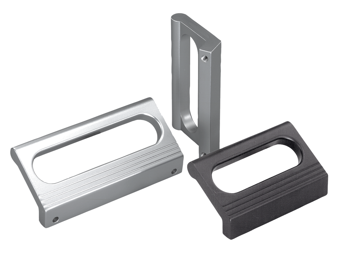 These ledge handles are available with M6 internal thread or with through hole for M5 countersunk screws for front mounting.