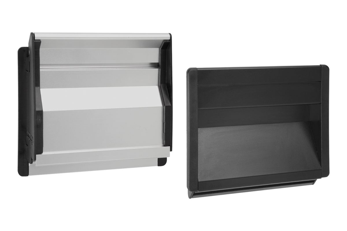 The Tray Handles style A can be used without screw mounting with sheet strengths of 1-2.5 mm. Two rubber inserts ensure absolutely firm mounting.