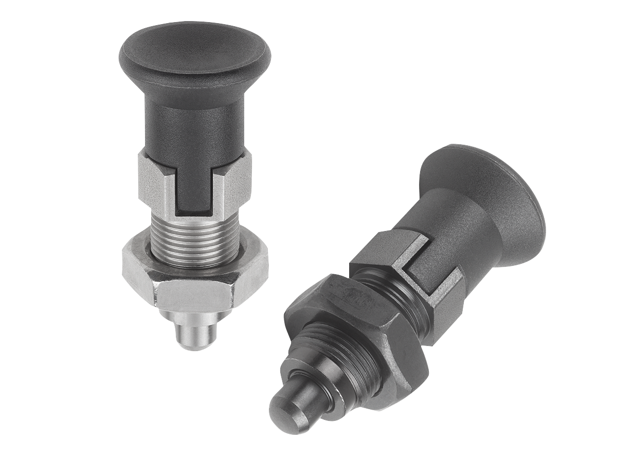 Indexing plungers are used where any change in locking position due to lateral forces should be prevented. A new indexed position can be only be moved to after the pin has been manually retracted. Style C and D are recommended for applications where the indexing pin should remain disengaged for an extended period and be prevented from springing back.