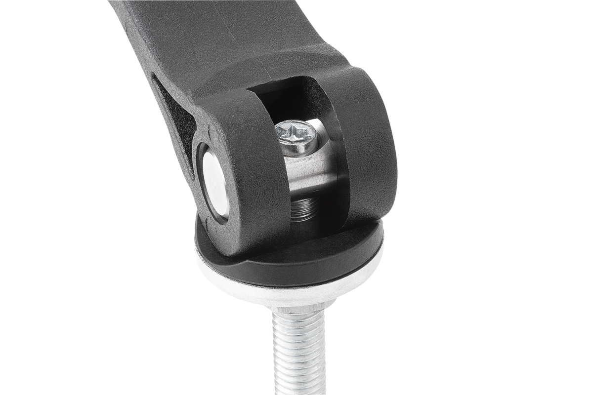 Adjustable cam levers are used if the position of the lever relative to the axis of tension only permits one specific position (interference circle). The exact position of the lever is adjusted using a screwdriver on the fine thread setscrew.