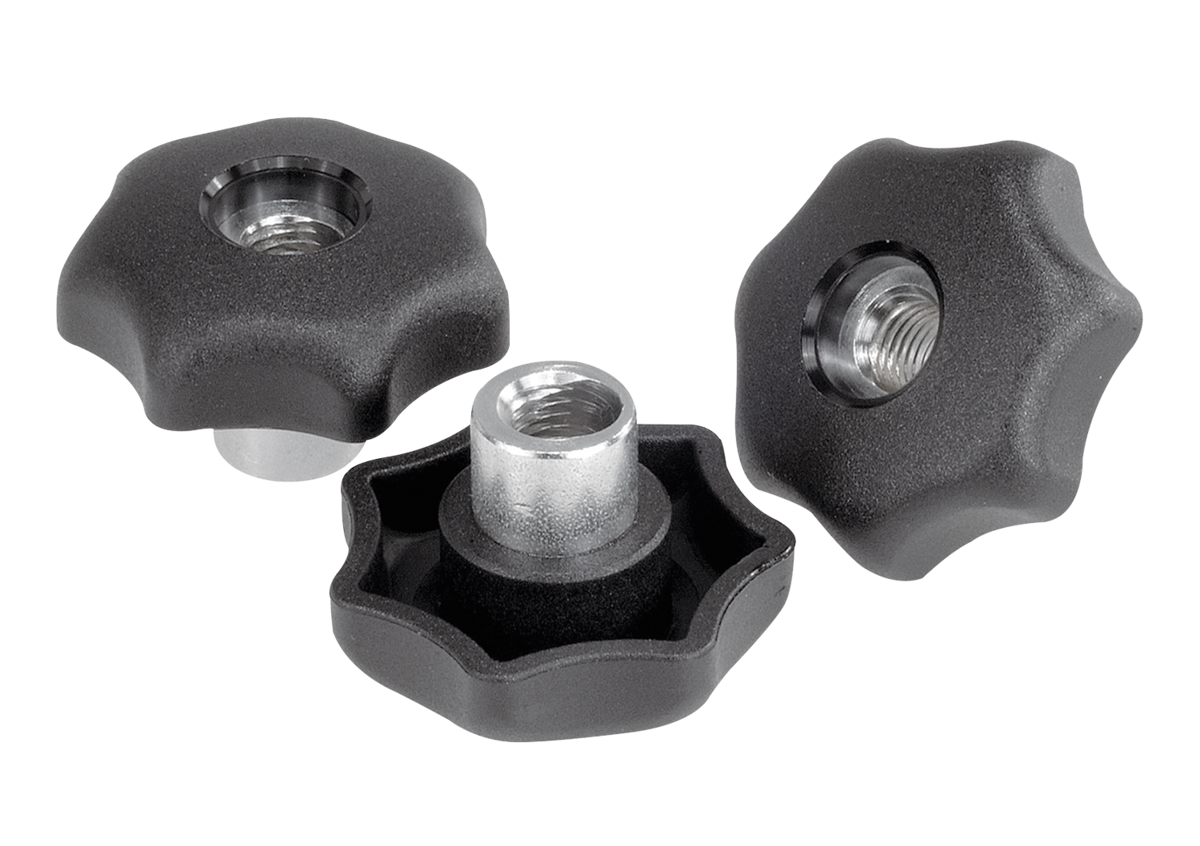 Quick-acting star grips can be used on all fixtures that do not require a high clamping force.