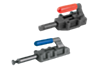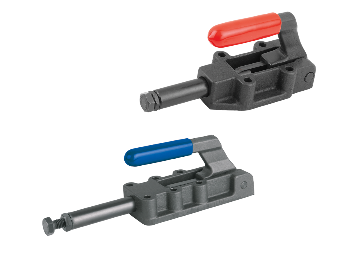 The clamps lock in the open and closed handle positions. They can be used for thrust or tension clamping.