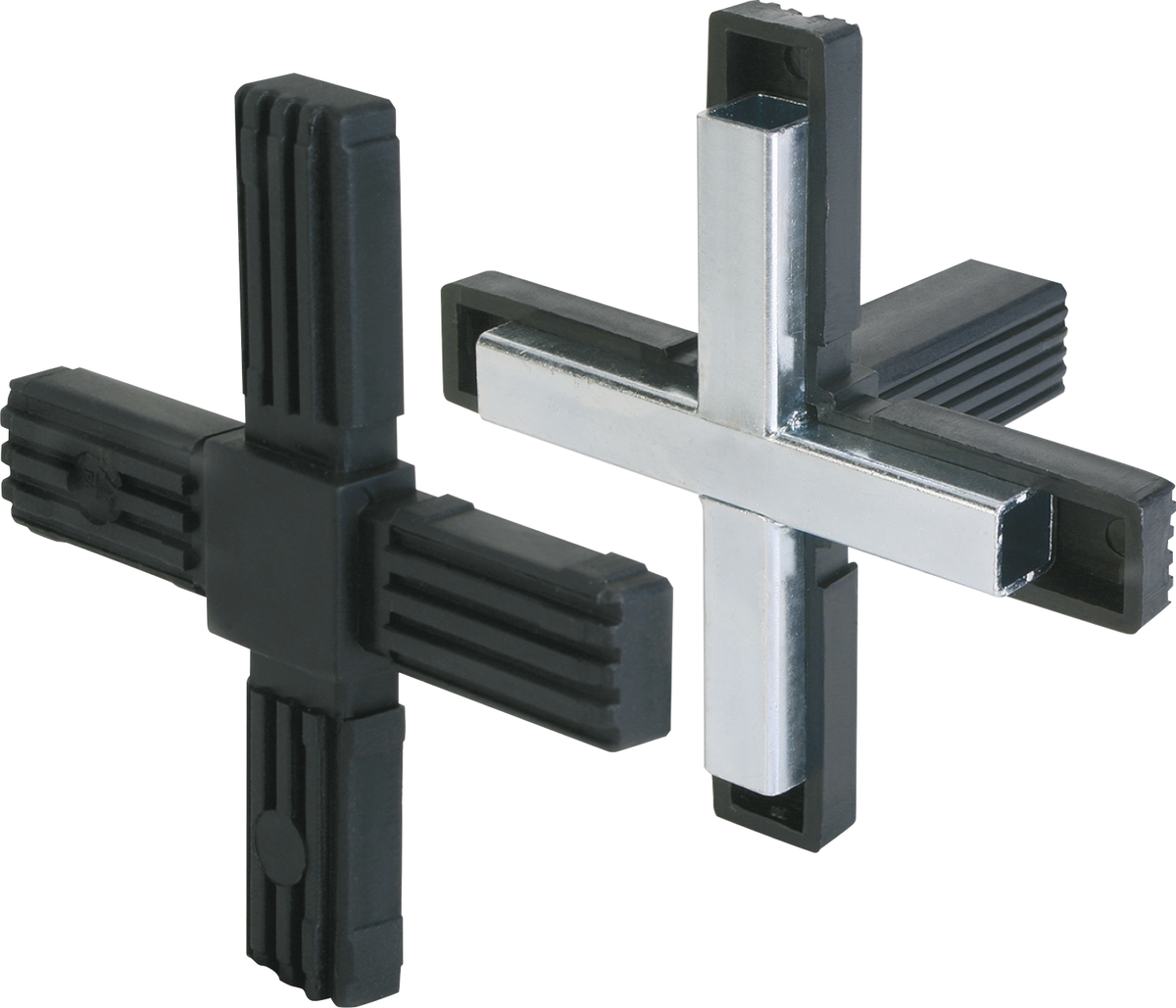 No screws required. The tube connectors are simply pushed into the appropriate square tubing. They can be dismantled and reused repeatedly.