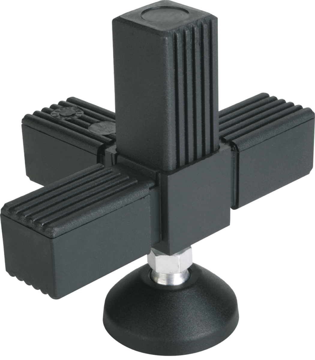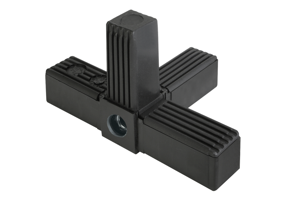 No screws required. The tube connectors are simply pushed into the appropriate square tubing. They can be dismantled and reused repeatedly. For installing swivel feet, casters etc.