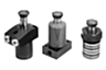 Swing clamps are designed for clamping fixtures where the clamping points must be clear during workpiece removal or placement. These swing clamps operate as single-acting or double-acting traction cylinders. There is a choice of three housing types for the swing clamps as well as various actuation methods. The clamping movement is initiated by a combined swivel and stroke motion. The actual clamping travel then occurs with a linear movement. A wide range of variants with a left or right swivel angle of 90° are available. The swing clamps are very durable because they have a metal wiper which protects against metal chips. In addition, an overload protection protects the swing mechanism from damage if the swing process is blocked.