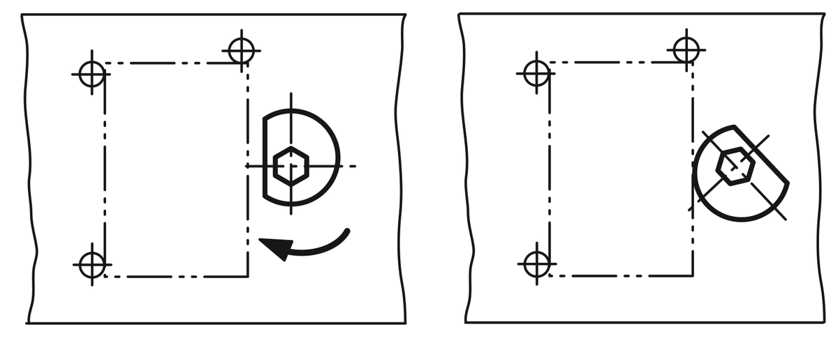 Drill and tap several holes at a distance X or Z (see diagram). Screw the cam screw into the required height and position with the flat side to the workpiece. Position the workpiece and tighten the cam screw with a hexagon key. Full clamping is achieved with approximately a 1/3 rotation. Lubricate the tapped hole regularly.