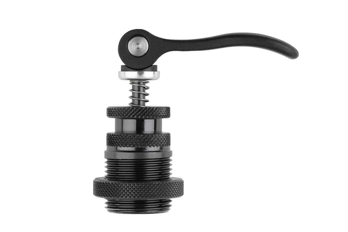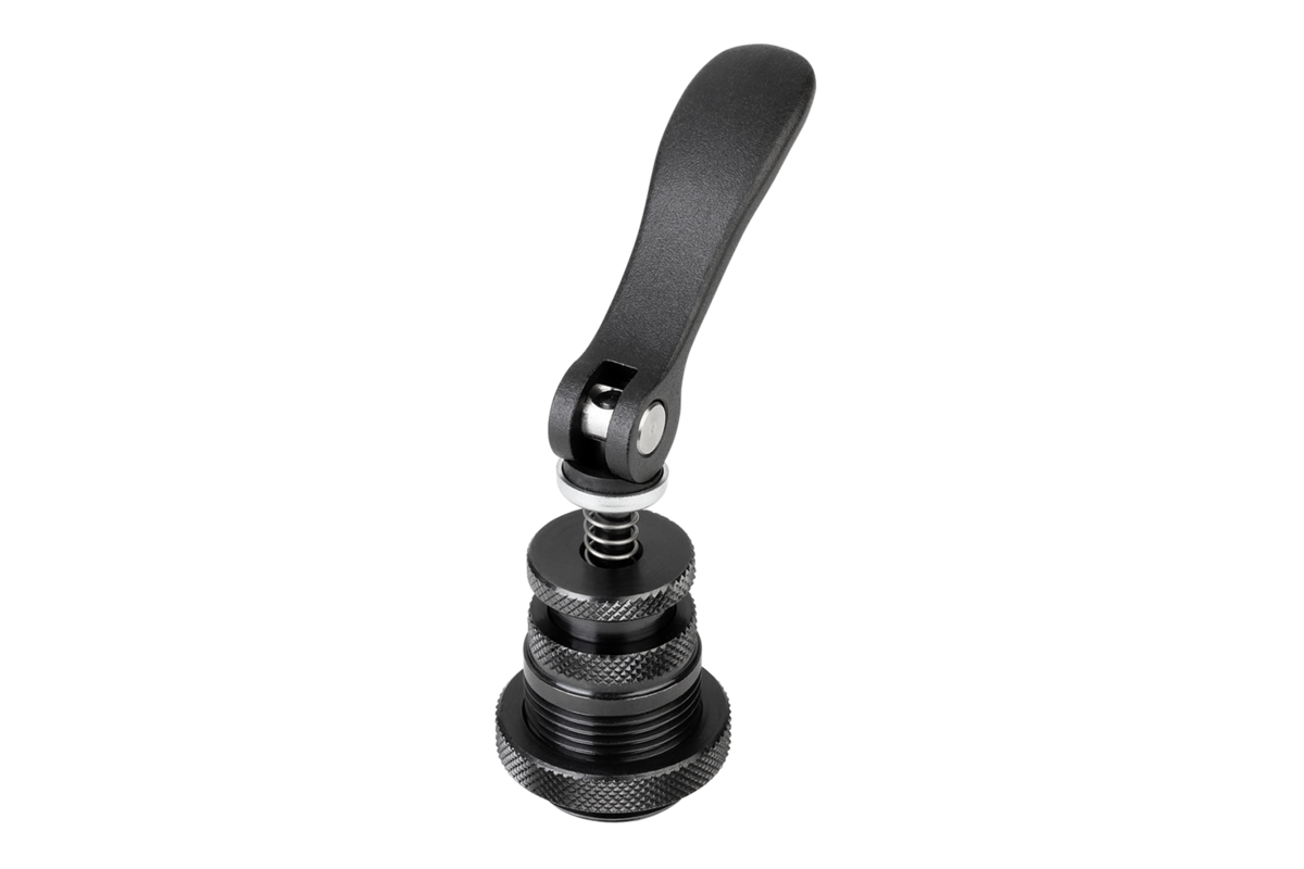 The clamp module is inserted into the T-slot from above and secured using the cam lever, no other tools required.