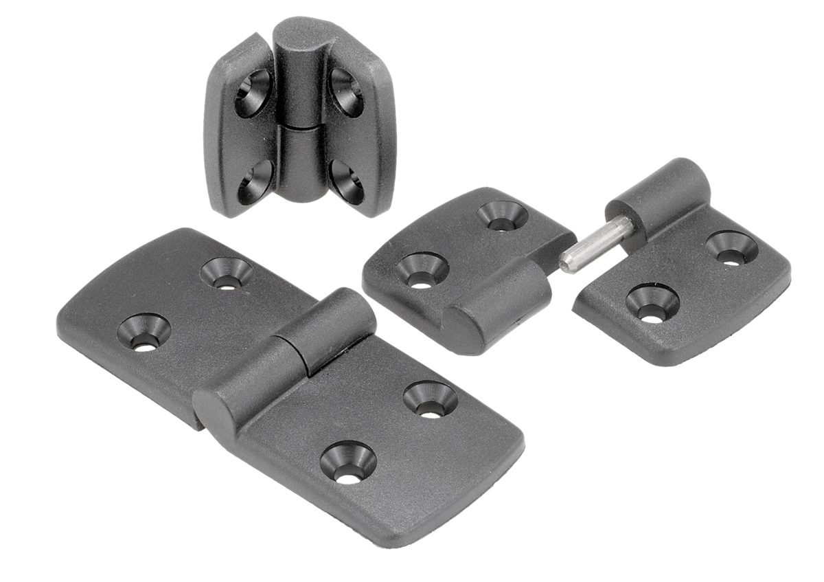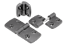 All hinges can be supplied on request with guide tabs for the slots of aluminum profiles (slots 6, 8 and 10). They facilitate assembly, secure the hinge against rotation and make it harder wearing.