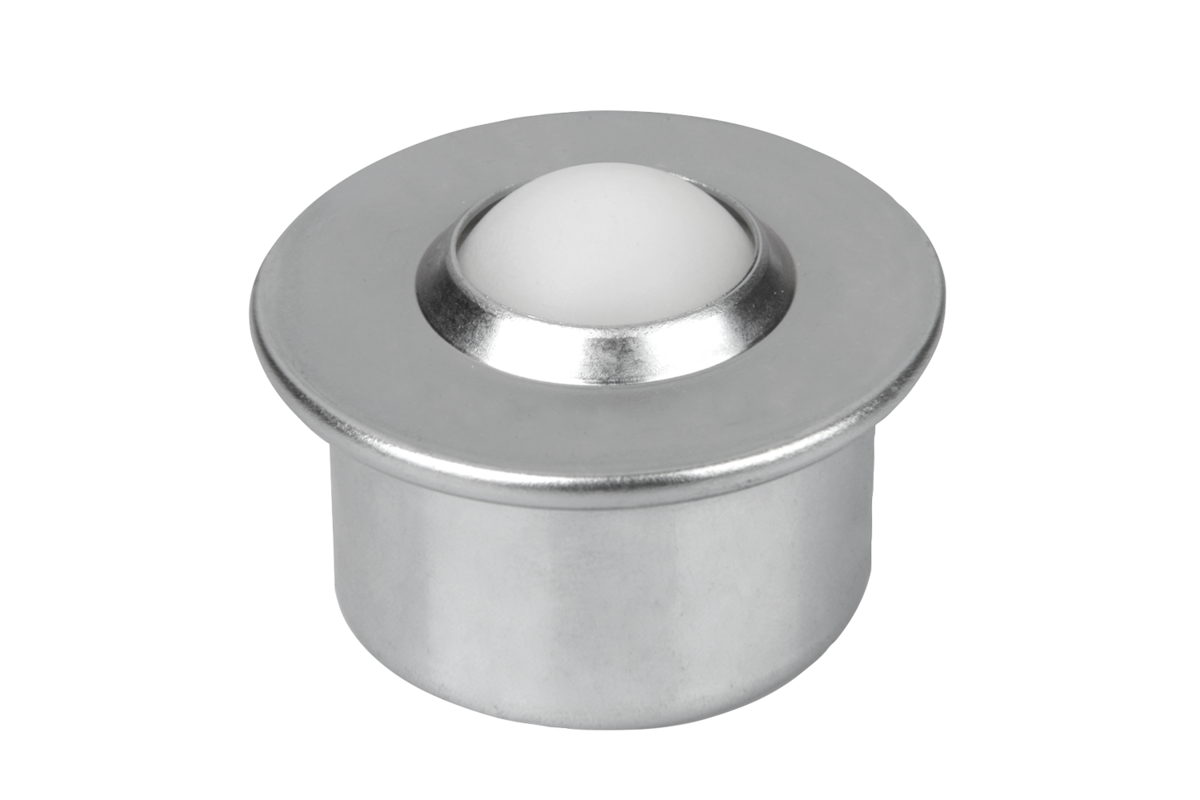 Ball transfer units with plastic balls are particularly suitable for transporting sensitive materials such as polished aluminum, brass and steel sheets or glass.