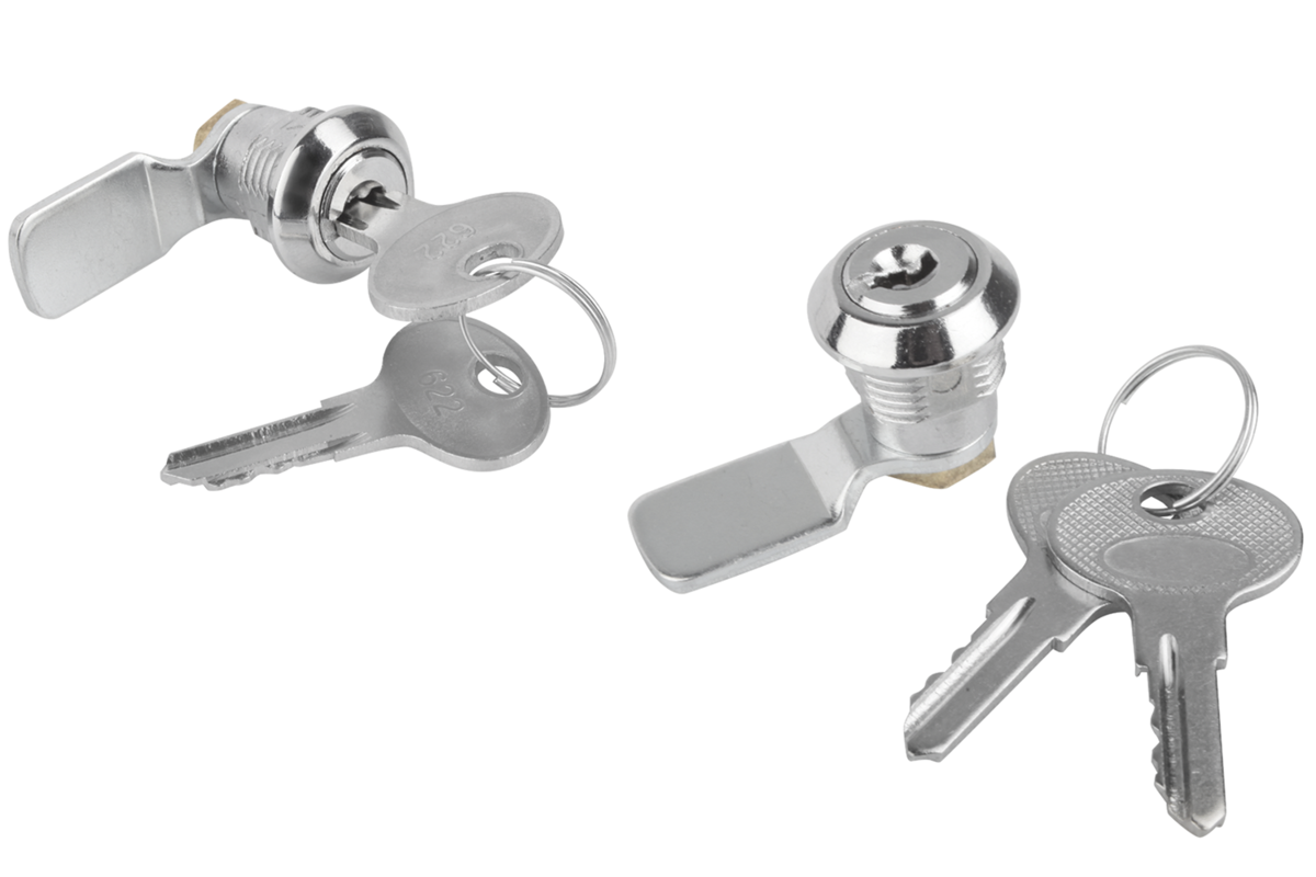 These quarter turns with cylinder are supplied with 2 keys. The key can be removed in both positions (open and closed). All cylinders are identical i.e. all locks can be opened with the same key.