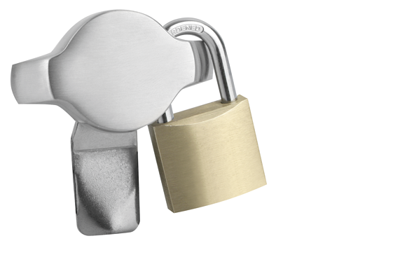 Quarter-turn lock with wing grip. Right or left deployment. The lock can be installed pre-assembled.