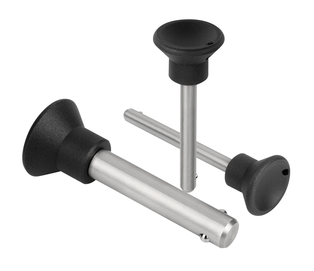 Locking pins are used for quick and easy fixating and joining of parts and workpieces.