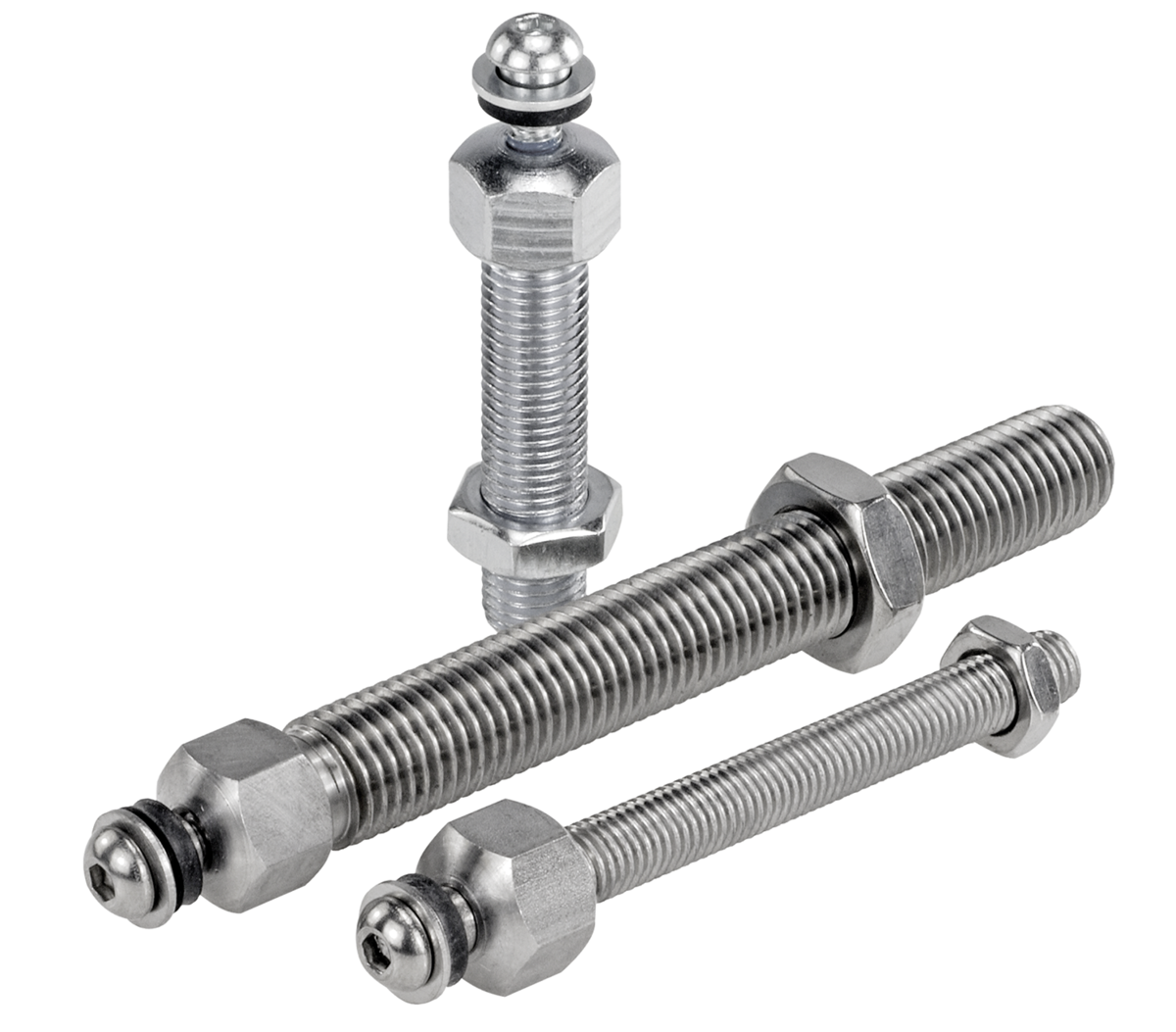Levelling feet consist of a plate and a threaded spindle. Any plate can be combined with any threaded spindle.