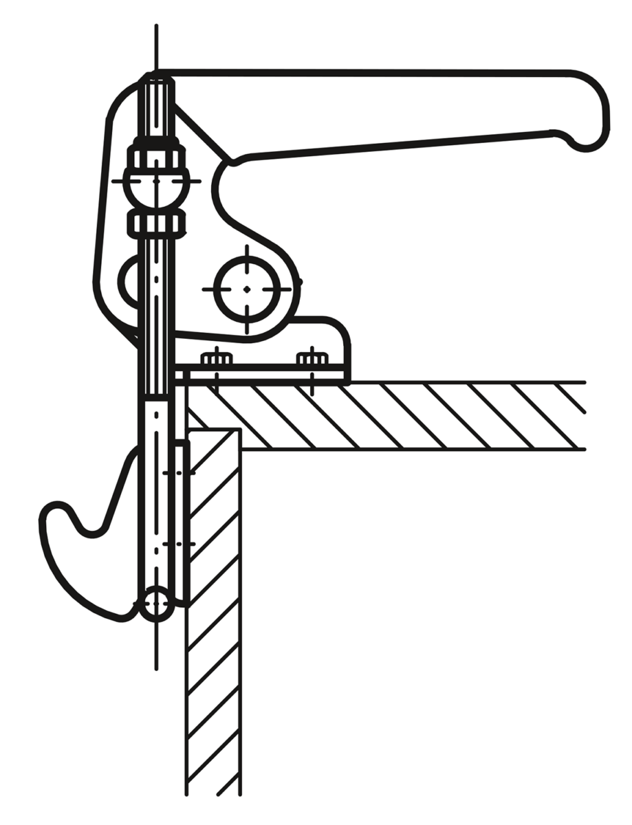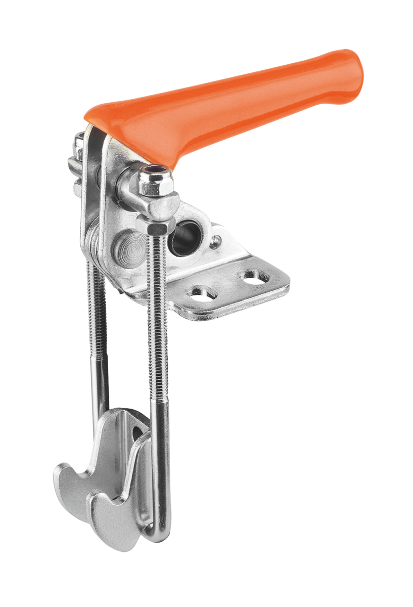 Vertical latch toggle clamps are especially suitable for quickly closing and locking covers and hatches.