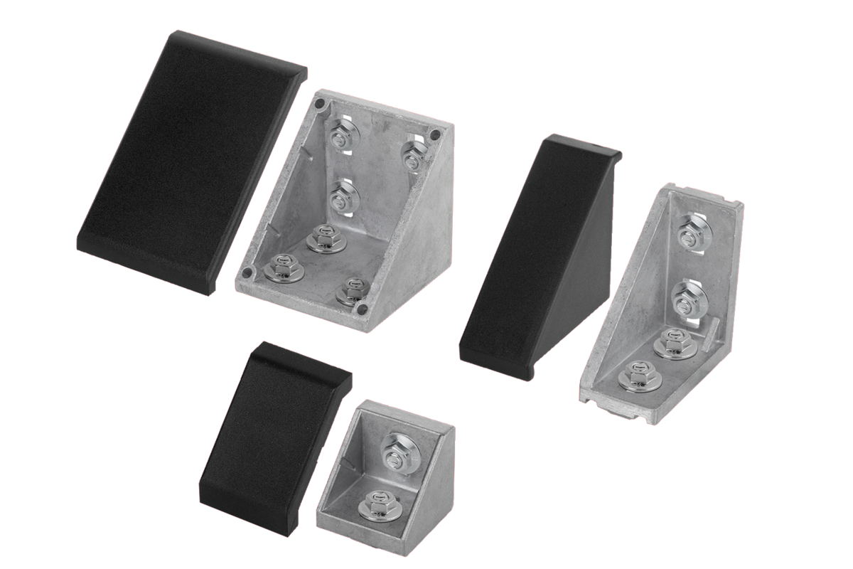 The angles have centering lugs for accurate and twist-proof mounting. The centering lugs can be removed if necessary by breaking off i.e. for mounting plates. The open side can be closed off with the end cap.