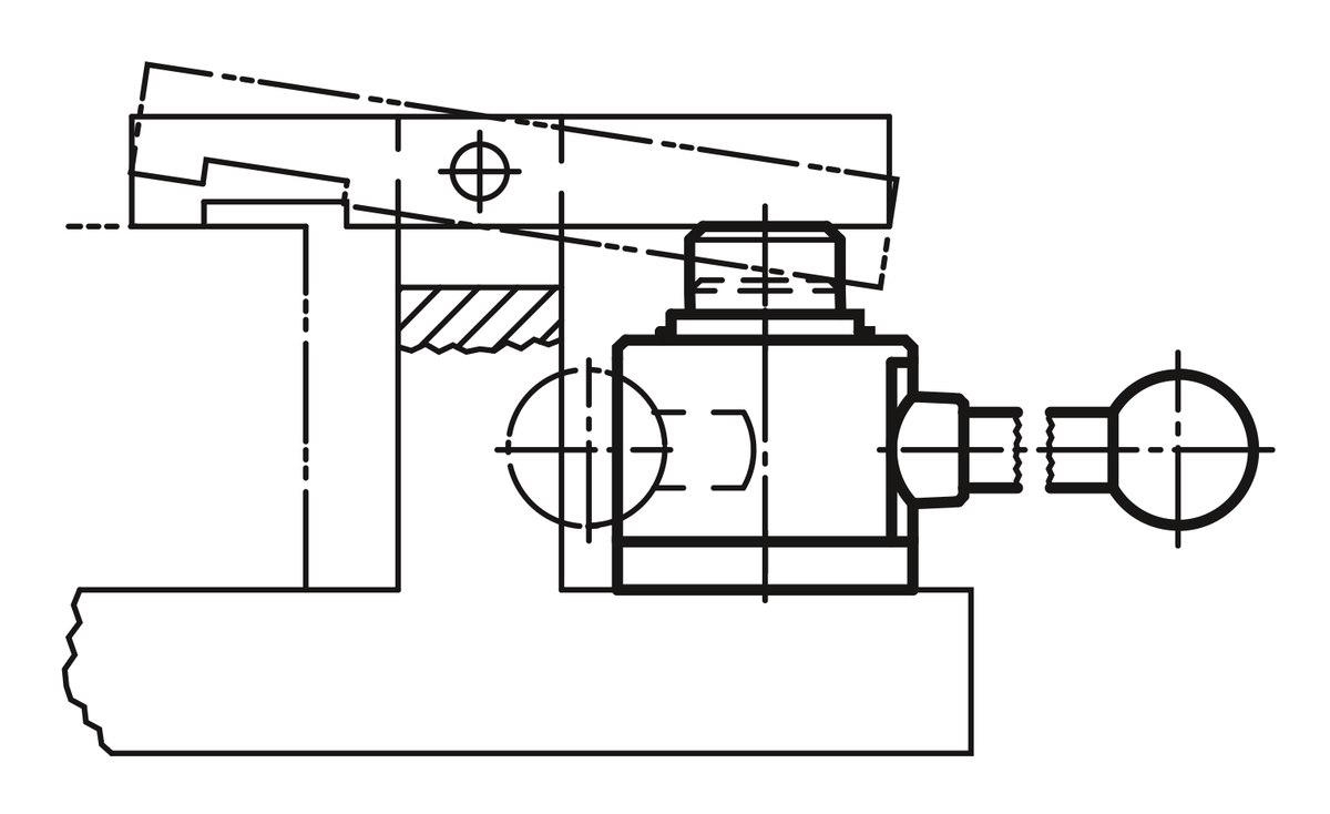 The travel path is 10 mm. Self-locking occurs in any position within only 2 mm of clamp travel, so workpieces with tolerances of up to 1.5 mm can be safely clamped. The Actima clamping device can be mounted in any horizontal or vertical position.