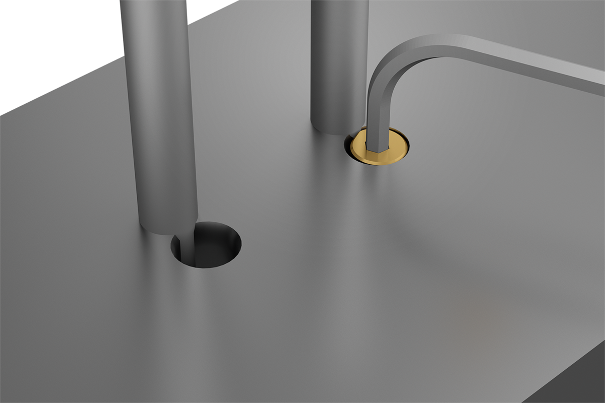 Insert the component to be clamped and the clamping cam into the workpiece. The indent mark on the clamp cam top face should be adjacent the part to be clamped.