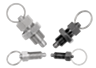 Indexing plungers, steel or stainless steel with stainless steel pull ring and locknut