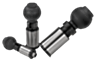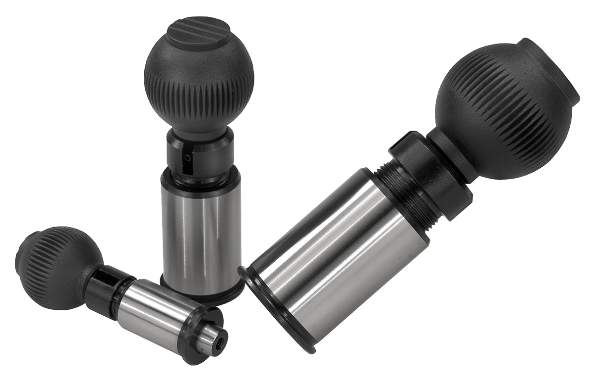 Precision indexing plungers, steel with plastic spherical knob, tapered indexing pin and locking slot