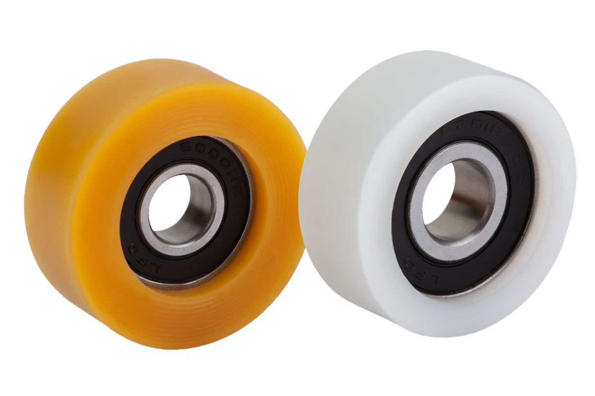 Extrathane tread: quiet running, low roll resistance, elastic, gentle on floors, very wear resistant, high cut and tear resistance, non-marking, non-staining.