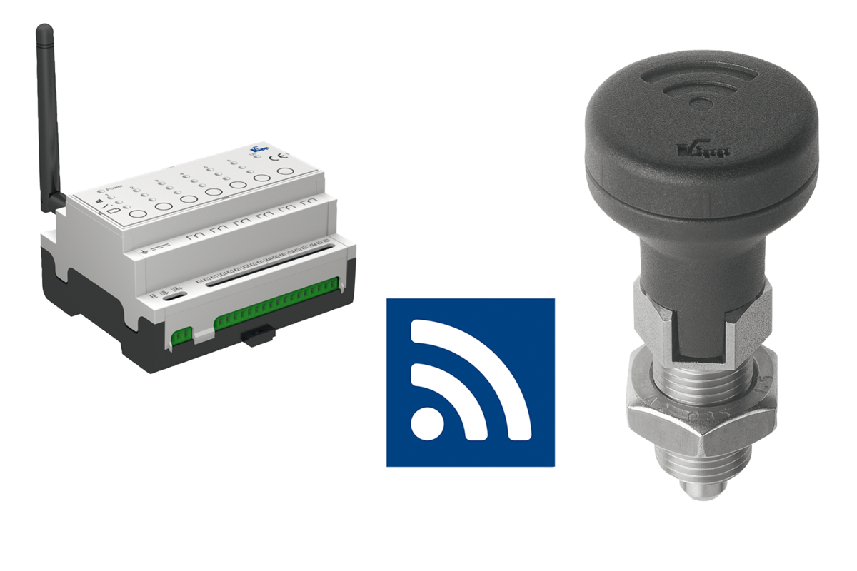 The combination of indexing plunger with status sensor and Gateway enables the signal to be processed in e.g. a machine control system.