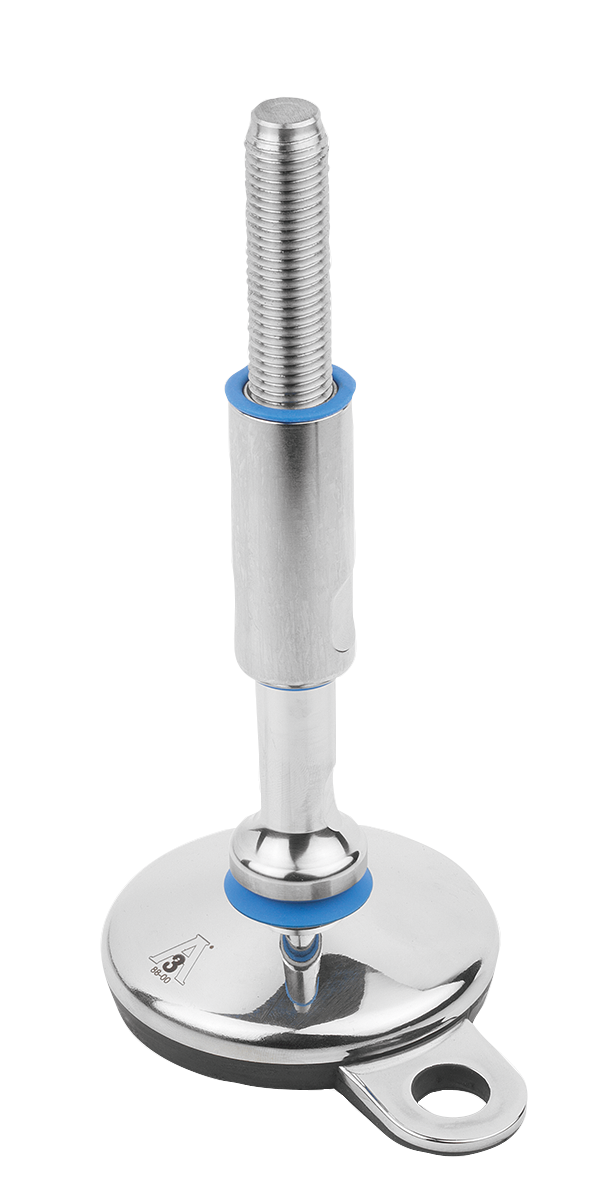 The machine foot is particularly suitable for machines, plants and appliances in the foodstuff industry, breweries, dairies, beverage and pharmaceutical industries.