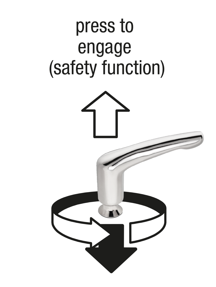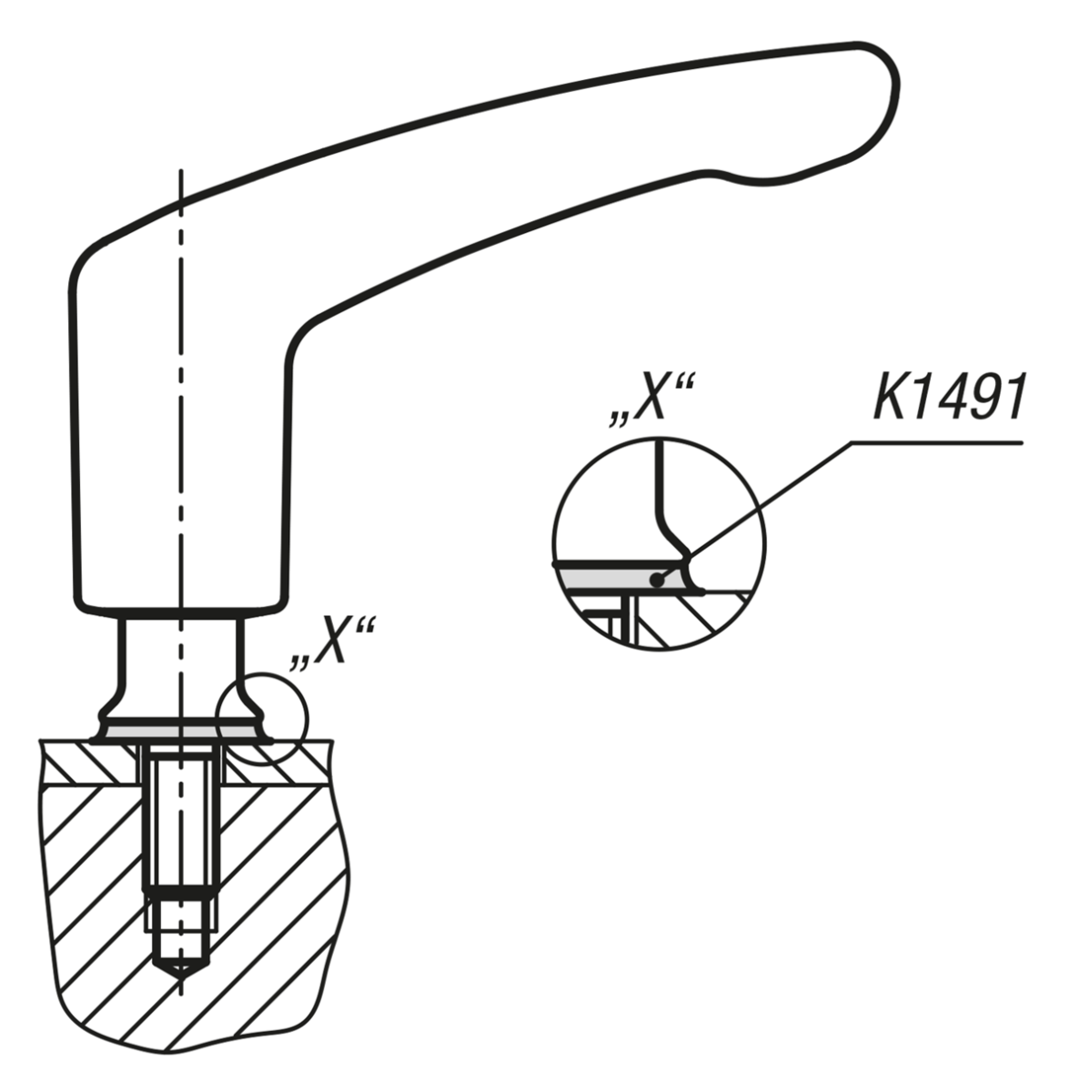 Adjustable handle designed for the hygienic sector. The completely closed grip part and the shaft seal prevent contamination of the lever internal workings. Additionally, the screw insert has a conical collar so that the fastening point can be hygienically sealed with the Hygienic USIT® sealing and shim washer.
