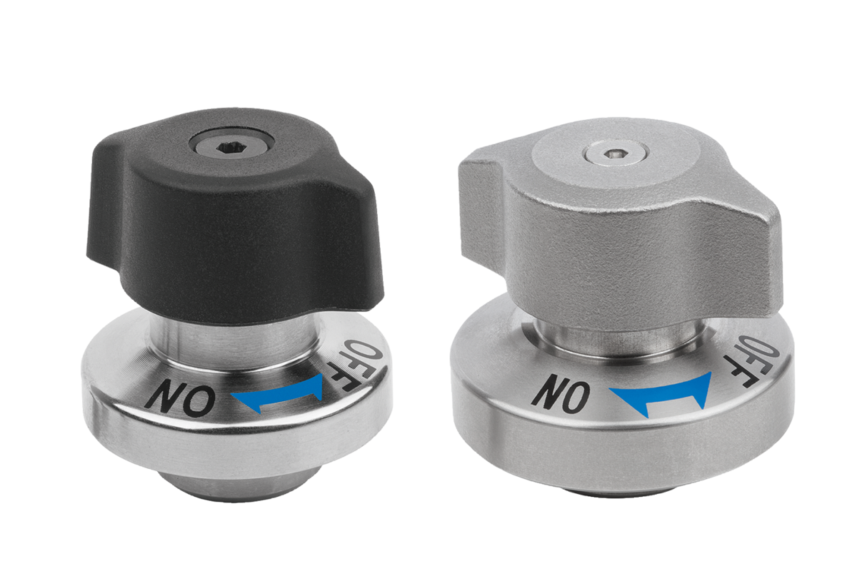 Set the lift and turn latch over the clamping pin and turn the rotary knob to the ”ON” position.
